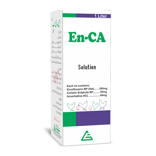 En-CA SOLUTION contains two different types of antibiotics and one anti-viral agent. Combination treatment with Amantadine (anti-viral agent) provide greater protection against lethal infection. Colistin is effective against most Gram-negative bacilli It remains one of the last-resort antibiotics for multidrug-resistant Pseudomonas aeruginosa, Klebsiella pneumoniae, and Acinetobacter Enrofloxcin is a bactericidal agent with susceptible bacteria cell death occurring within 20–30 minutes of exposure.