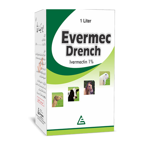 Evermec Drench is highly active and safe broadspectrum antiparasitic agent. Evermec Drench effectively controls all type of internal andexternal parasites that impair health and productivity of livestock. Evermec Drench paralyses and ultimately kills all parasitic nematodes, arachnids and insects by a unique effect on nervous system of these parasites.